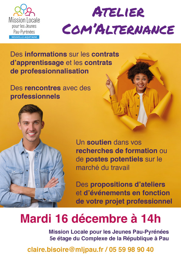 Rendez-vous le mardi 16 décembre 2025, à la Mission Locale pour les Jeunes Pau-Pyrénées à 14h, 5ème étage de la tour de la République à Pau.