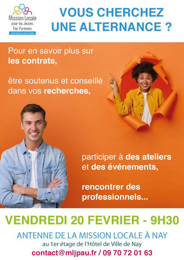 Rendez-vous le vendredi 20 février, à 9h30 à l'antenne de la Mission Locale à Nay (1er étage de l'Hôtel de Ville)