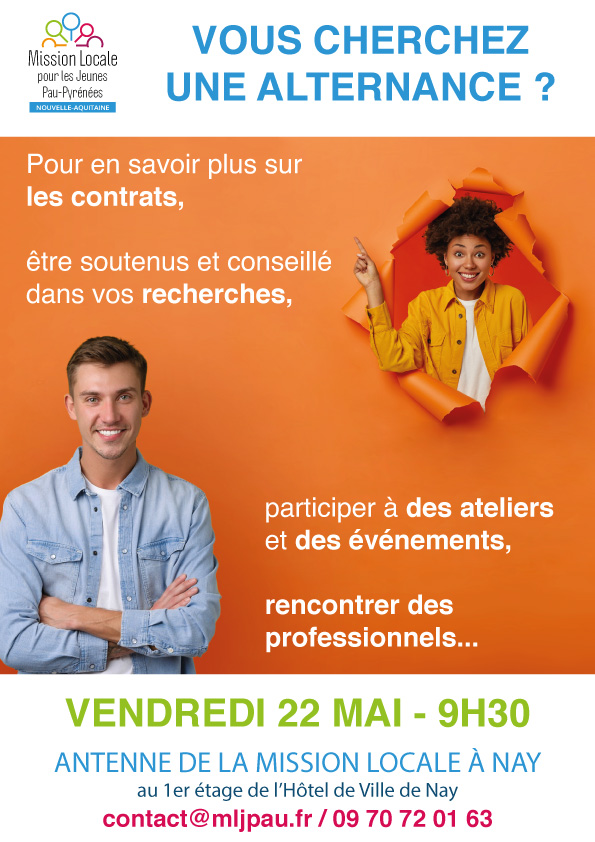 Rendez-vous le vendredi 22 mai, à 9h30 à l'antenne de la Mission Locale à Nay (1er étage de l'Hôtel de Ville)