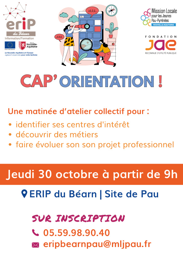 INSCRIPTION OBLIGATOIRE au 05 59 98 90 40 ou par mail eripbearnpau@mljpau.fr.