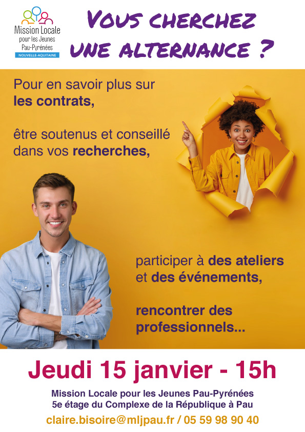 Rendez-vous le jeudi 15 janvier, à la Mission Locale pour les Jeunes Pau-Pyrénées à 15h, au 5ème étage de la tour de la République à Pau.