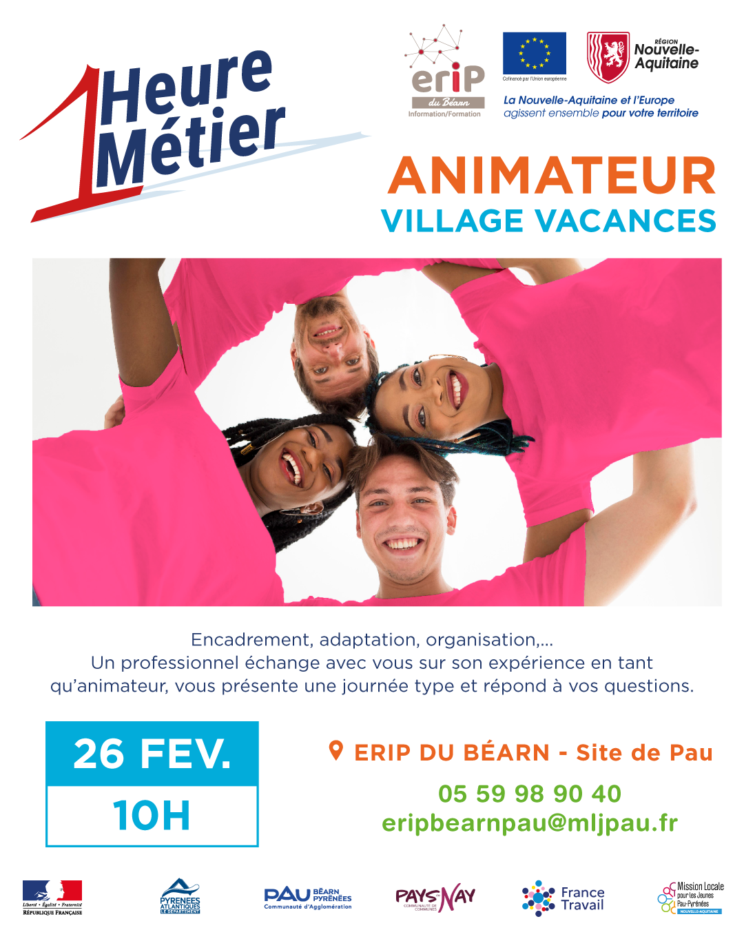 ERIP DU BEARN– Site de Pau I 1 Heure, 1 Métier / Animateur Village Vacances