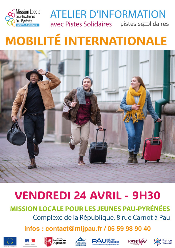 Rendez-vous vendredi 24 avril à la Mission Locale pour les Jeunes Pau-Pyrénées, à 9h30 pour une réunion d'information sur la Mobilité Internationale !